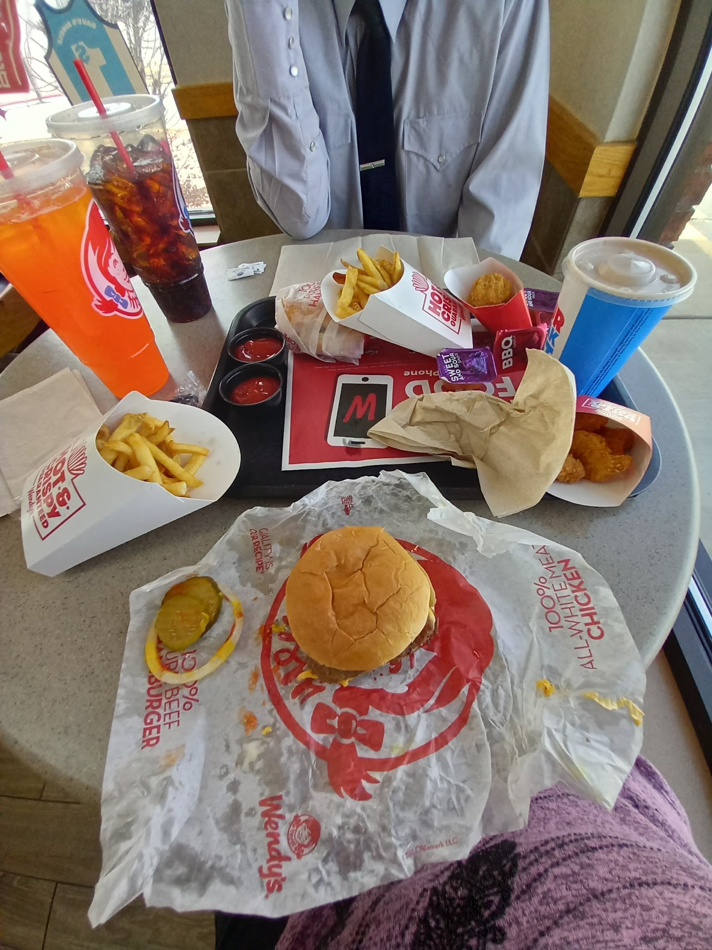 Read moreI had a horrible experience at this place. We didn't have a single issue until they took our order. I had ordered 4 Dave's singles at medium size which were 7.50 each which would round to around 8 dollars after tax. Once I saw the receipt, they had charged me around 10 dollars per combo and it had them marked as classic chicken sandwiches. I immediately went to complain and told them they had messed up the order. I asked for the food to be replaced with what I originally ordered with a partial refund, because I was charged more for meals I didn't ask for. Then the cashier who messed up my order brought the manager. The manager then said if I wanted a partial refund for the food or extra fries. So I asked for a partial refund, then she said the refund would be about 2.50, which didn't add up at all. I told her that didn't make sense. I told her I originally ordered 4 Dave's singles and they were 7.50 each, she rudely said no and the price on the menu was wrong and that they were actually 8.00 each which made no sense. Then she aggressively showed me the screen showing 9.38 and she said that was price after tax for each one and even showed me the screen. I didn't want to make a scene for 6 or 7 dollars that were overcharged, so my family and I left. But she was so rude and I'm never going to that trash Wendy's again. They have no idea how to professionally help a customer. Giving one star is me being nice. I even felt they were being partially racist because they treated other people with all smiles. When we would approach them, they gave us the cold shoulder and wouldn't even make eye contact with us ( we're Mexican-American). Overall, one of the worst...