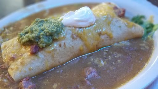 I had the Beef and Bean burrito, smothered with green chile sauce. Ok, before I rip into the green chile part, I should mention that I lived in New Mexico for ten years, so I KNOW what green chile is supposed to taste and feel like in my mouth. I have high expectations. That being said, there was NO heat to the green chile. I felt like all the capsaicin has been cooked out of it. It also wasn't very green, as it had been mixed other ingredients to make it more sauce like.