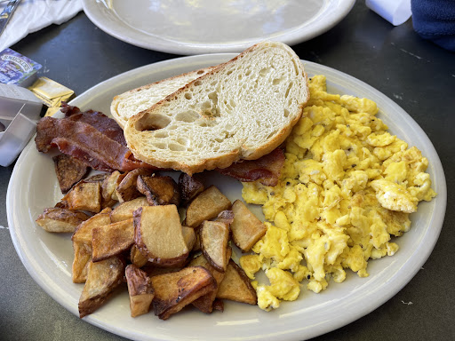 Don’t waste your money. This place is a joke! JOKE JOKE I ordered the scramble with crispy bacon. The bacon was NOT crispy, and the whole dish was so cold that the shredded cheese didn’t melt. The rim of the dish was covered in sauce when delivered, so I can’t even say the presentation was nice. Then I inquired about the potatoes that were listed in the description and was told the few slices of shredded hash brown mixed in were the potatoes. There was no offer to bring out any of the pictured red potatoes. I ended up asking for a replacement dish of basic eggs and toast. It took another 20 minutes and this too was disappointing and flavorless. I asked for the potatoes to be fried hard and they were still dippy. My boyfriend’s burrito wasn’t much better. He ate half and then bought a bagel instead. He ordered it with peanut butter and paid. After paying, they said they had no more peanut butter. When he said he didn’t want the bagel without it, the kid went to the back and magically found peanut butter. It was still 15 minutes before the bagel came out. The lack of care and customer service were far from appealing. No one checked on us even after knowing we were unhappy and had requested a new dish. Unfortunately, you pay and tip before receiving your food, or it’s safe to say they would not have gotten a tip either. Attention to detail is not the strong suit. My original dish was missing the sour cream, the bacon was not crispy and the salt I requested on the rim of my Bloody Mary was also overlooked. The customers at the next table ordered a burrito with sauce on the side and it came out smothered in sauce anyway. We ended up still having to go elsewhere for breakfast once we left. Safe to say we will NEVER be back! These people are an embarrassment to the industry. McDonald’s would be a...