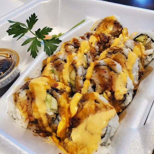 I love all of the deep fried options that they have for the deep fried sushi but I'm not sure what the crunchy sharp thing is in the tempura batter or the rolls. I've ordered three or four times now the same rolls and there's something dangerously sharp in the sushi.I don't know what it is. I don't know if it's tempura flakes or if it's like deep-fried crunchy rice or a piece of glass or something got put in this but something is just sharp crunchy like somewhere in the roll. I feel around and try to find it, bite thru it. I don't know what it is. I have ordered the same rolls three or four times now and it's the same each time. I don't know if it's the batter or if it's inside the sushi but it's not like just a regular crunch it's where you can almost break your teeth. And you have to stop chewing. Also I think that they should drain the deep fried things on the paper towel they bring it out to you fresh from the fryer and it's dripping Grease when you bite into everything that's fried. I'm sure paper towels are not expensive with how much they charge. I am used to the Rolls being a lot bigger... but if you order a couple of them and an appetizer and soup you can get full. And the waiter is so nice to look at and and works so well around the place and with the customers that i would eat just about everything there! He does so well with all kinds of people that come in. I'm so glad he is there!