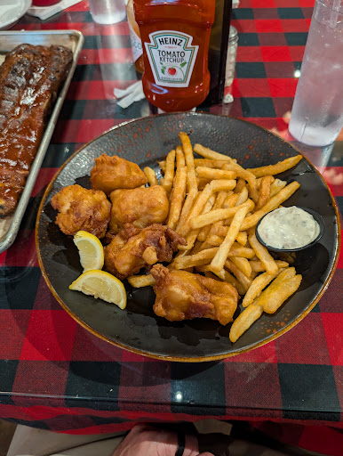 Read moreWalking in I immediately appreciate the over all aesthetic. It feels open yet warm and welcoming. However the open space provides no sound buffer, so the dining room gets very noisey and it feels chaotic. Because of that this is not a spot we could come for date night. I understand nothing can be done about it, but it's good to be aware of. Now, the food.... We ordered fried zucchini, corn fritters, halibut tacos, and a bison burger. Zucchini needed seasoning and tasted like it was cooked in the same oil as fish. Not overwhelmingly so, but noticeable enough. The sauce it comes with is good though, and they were cooked well. Nice n crispy crunchy! Corn fritters were very good. Get them. If you're concerned about the portions of the fish n chips get the halibut tacos. Very good portion size. I like the over all simplicity of the dish because you can taste each of the ingredients. However, same song as before in that the fish needed seasoning. Mine were also searved without the aioli which I didn't realize untill I was done with one. It def needs it. But the fish was cooked perfectly. The burger was under seasoned as well. There wasn't much about it to stamd out as a good burger. Oh and the fries! Reg fries are ok. I don't like most fries but wouldn't mind eating these. The sweet potato fries are good! Seems like they're battered and are a good texture. Both were seasoned well. Over all the place feels new with all it's quirks, my partner wont return because of the noise but I will be willing to, and while we appreciate a low sodium meal the kitchen needs to up the seasoning a bit. Not just with salt, but flavor in general. I recommend 6 cloves of garlic...