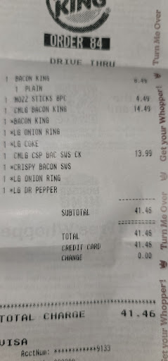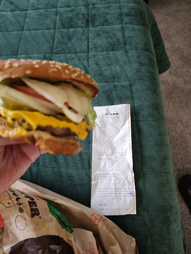 Ā Ā Ā Read moreTo day, I was in a little rush and just need a simple CHEESE BURGER, yes CHEESE BURGER.... As, I drove in, I saw the drive through had a little line, but the parking lot was empty.. So, chose to just park, and go in for a CHEESE BURGER.. When I walked in, there wasn't anyone in there OUT dated since 1997 dining room.... There, was person at the counter, pretty much there hanging out because of friends of worker there.. There, wasn't a person at the counter to take my order for a CHEESE BURGER, but the young man at the drive through filling there order notice, me there and shouted out twice help at the counter, including the man standing there visiting a crew member also said it alsoš³š³... A lady comes out of an office, goes to the man visiting and started talking, and not even noticing me, or taking my order, and not even asking if I've been help... So, after this CLUELESS lady speaking with the man at the counter, the young man at the drive through AGAIN, requesting someone at the counter is needing help, and not EVEN a MANGER came out to help... I finely just waved my hands up in the air and said REALY!!! And walked out! This has to be the most GETTO establishment I've ever been in.. This place is soooo, ready and set up for a lawsuit, for having broken/missing backs on there bar stools, and broken tile that's covered with carpet runners.. If Burger King inc. thinks, this is how things roll, and then SHAME ON YOU!!! This will, be sent to corp...