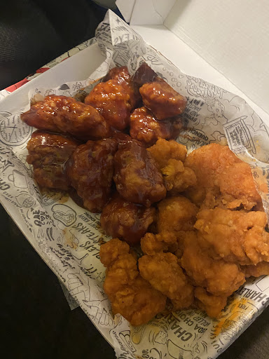 Read moreFirst time trying them after a birthday party nearby. It was maybe a couple people before us but they got taken care of fairly quick Same for me as well. Great prices especially for the portions. My 2 littles shared the 20 piece box with cheesy fries and they ate half and half and were full. Food was 10/10 the Cajun wings werenât spicy but still finger licking good with their Sriracha sauce. They had plenty of seating while waiting for our order. I say the total time from ordering our food to receiving it was about 8-9 minutes probably less than that. I would get the cheese on the side if possible if youâre not going to eat right away. Some of the fries were soggy when we made it home from the cheese. The rest of our food was still fresh and hot it smelled as good as it tasted !! Will be my go to spot...