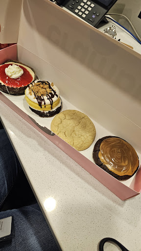 Read moreI used to not be the biggest fan of their cookies, they were just too large and maybe that's why the texture was just never right for me.. but they sell mini cookies now and they seem to cook right now.. I've literally had a gift card for over a year cuz I just wasn't a fan.. but I went for it this weekend and got a 3 pack of the minis.. 2 were topped with a bunch of caramel and there was a fluffy creme hidden under it. Ok ya got me! I haven't eaten the chocolate one yet.. it has chopped pecans on it.. if you weren't a fan of their Enourmous cookies - maybe give them...