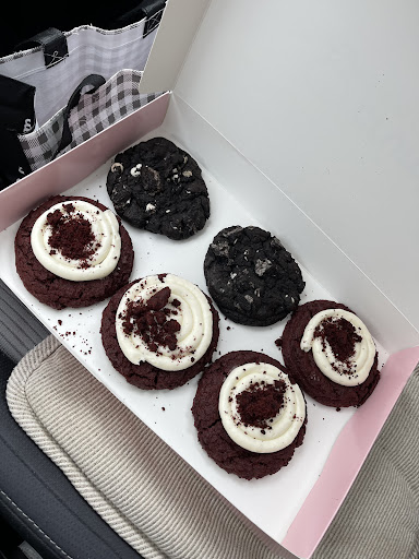 Read moreThey are very sweet employees inside but they should have labels on the cookie display because I was pointing to the cookies I wanted without knowing what they were called or what they were and then I realized when I got in the car that they didn't give me one of the cookies i had pointed to. I don't think this would have happened if they had the names of the cookies on the display by the counter or on the door or window or somewhere where you could see what all the choices were. The menu is way off to the left and i didn't know what that area was until i was done with my order. I just moved here from out of state and I'm used to cookies from this company being warm and soft and these cookies were too hard and they weren't all soft and warm. It was abit of a let down for $18. We're expecting perfection - soft warm fresh cookies not old not cold not hard. They should repeat the order back to you and verify it...