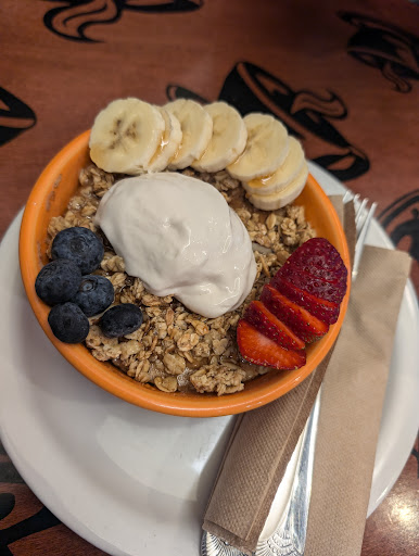 Read moreI visited Dark Horse Coffee for the first time today while visiting Anchorage, AK. The cafe is located in the Downtown area which seems convenient. I ordered an iced latte with a bit of their sugar free blueberry syrup flavour shot, their award winning Vegan Pancake Bowl, and a chocolate covered coconut macaron. The iced latte wasn't the best to be honest, as to me it tasted too bitter and I only ended up having a few sips of the drink. The Pancake Bowl was truly delicious and something new that I hadn't tried before; I enjoyed it very much but wasn't a fan of the cashew yogurt on top, all else paired nicely. Lastly, the chocolate covered coconut macaron was tasty as well. In my opinion, the items were all fairly priced and the service was good. The atmosphere of the cafe could use some work in terms of ambience and updating. If I'm in the Downtown area again, I'd definitely visit again just for the Pancake...