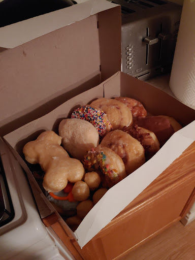 Read moreI appreciate the fact that you guys deliver so much, after hours and during your normal business hours. My donut tooth hasn't struck for a while, but it certainly hit with violent urgency tonight. Ordered on DoorDash, and got a nice surprise. The donut gods have blessed me with my all-time childhood favorite, the apple fritter, and a great selection of other special goodies and bonus treats, which made me positively giddy. I took the bone as my first donut and loved the cute smiley face donut that was hiding underneath. So cute and adorable!