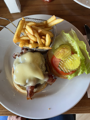 A bit more of a sports bar feel the staff is nice. Food comes fast and service is great once seated, but it’s jamming during lunch. Prices are good and the locals love this place. Décor is a bit of a snow lodge feel with a wood heavy vibe and large windows facing the street, tall roof for 2nd floor which I didn’t check out. I expected to see pies being tossed, but don’t recall them at all, see what I mean about blurred lines.