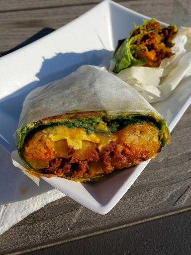 We stopped by house of the rising bun on our way to the airport to leave Fairbanks. Such a cute little shop. Great cinnamon rolls! Pretty good banana bread (especially if you like chocolate chips in your banana bread). My husband got the breakfast burrito and was a little disappointed, feels like it should've had more hash browns and less spinach or been called a breakfast wrap instead of a burrito. Very enjoyable. Would definitely recommend or return if we come back to Fairbanks...