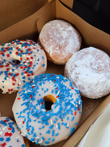 Read moreWe got 6 donuts plus 12 donut holes and they tasted great! The donut holes were light and fluffy, super tasty. They have super unique flavors, something for everyone! Blueberry Poptart: super natural blueberry flavor- very impressed! 10/10 this is my favorite one Dubai chocolate: super fluffy, lots of filling, beautiful presentation, a little pricy but appropriately priced for what it is & current market 9/10 Nutella filled: 7/10 my only points docked are for it taking 3 bites to get to the filling but overall VERY tasty! I would order it again Cream cheese filling: 8/10 very good but also took 3/4 bites to get to the filling. I think just a tad more filling and I’d be giving it a higher rating. Fluffy, sweet, good quality Cream filled: 7/10 took a while to get to the cream!!! Very very sweet Cinnamon roll: 8/10 a little blander than I was expecting but the dough was really soft and the glaze very nice. I’m going to take that one home and heat it up, I would expect the warm one will be a 9/10! With that said - the donuts are amazing but we showed up before they opened/ early and waited for TWO HOURS!! I do think one more staff member would really help the flow but we did go expecting a wait. It was a little hard to see just one person manning such a busy line but she absolutely crushed it and gave 10/10 customer service. Super sweet, friendly, helpful! We were a little disappointed that we couldn’t try one of the fritters, they ran out super fast! Maybe a tray of fritters? We will be returning most likely during the winter when less people are all about! I would say to give them a try, the donuts are...