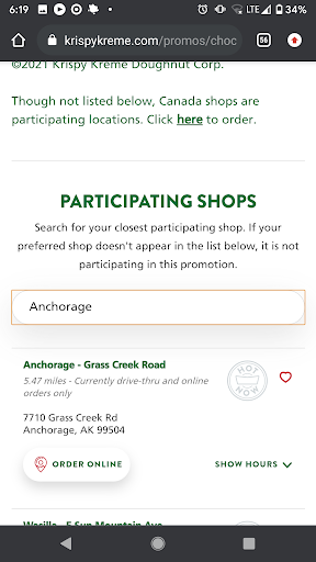 Read moreWent in for the 25% off chocolate dozen with purchase of any dozen promo. Tried to purchase online but kept getting an error with the code even though it showed the coupon banner at the top of the order screen. Inside the store I was told they were not participating. Not happy but ordered a half dozen so the kids weren't disappointed. Went back online and used the search function that KK has to find participating franchises. The one that refused to honor the deal was listed as participating.