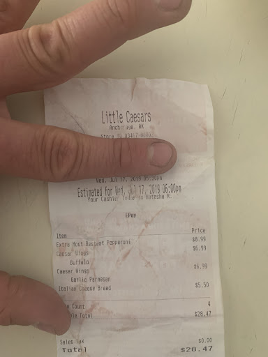 Ā Ā Ā Read moreThis location is way better than the south Anchorage one. Not that the food is any different, but the employees are so much friendlier. The guy cashier looked a little sketchy, the first time I went in, but he's so nice & he works really hard to make sure you're happy. That's unusual in fast food service & I think it deserves some recognition. We ordered 2 pizzas to go, and the crust got kinda messed up on one. He made sure to show me, and he offered to make me a new one. It was really no big deal & I told him it was fine, but he still offered me a free crazy bread. That's just really nice. He always thanks you for coming in & apologizes, if you have to wait. I don't know his name, but he does a good job & he's the reason that I drive to this one, instead of the SA, where the lady acts like it's such a bother to help you. Great job, front counter guy! (I'm sorry I didn't...