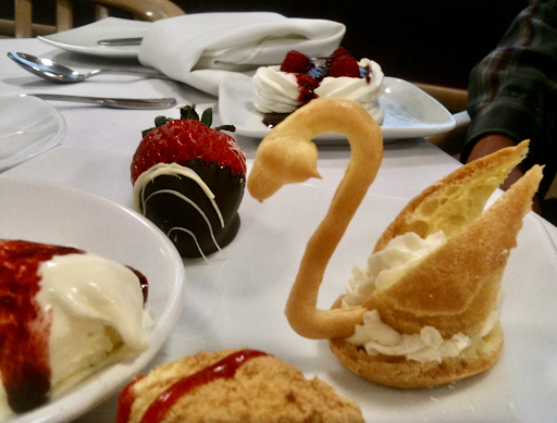Loved the experience here today. Iām glad they are open for the semester. Today, after ordering a lovely latte, I had gnocchi to start, it was so good I got a second gnocchi to take home. Then a beet salad with goat cheese, candied pecans, and a balsamic dressing - ever so tasty. It was a snowy day so I added a hearty bowl of chicken noodle soup. I then enjoyed the most delicious tender filet mignon (I could have cut it with my fork - I tried just to see if I could). The filet was heaven in each bite to this carnivorous omnivore! I was fully satisfied but had to order dessert, I ordered two because life is short and I couldnāt decide between the Chai cake with pumpkin mousse or the Citrus and honey dessert. The Chai & Pumpkin was light and flavorful - like a bite of the winter holidays! I took a bite of the Citrus & Honey - tart and creamy on a cookie - very tasty but had to take it home...
