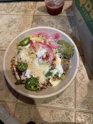 Read moreI ordered a pick up. And by habit I always check my order before I leave, and they had forgotten a couple pieces of my order. They were busy so I just reminded them and asked for the missing items. I then get home and open my bowl to find that I paid $14 for a half full bowl. I had order it with everything on it. I don’t see or taste my queso, there was either very little or not all of the three salsas I ordered. And the smallest sprinkle of tortilla chips. I ordered half and half for my beans and my rice, and they did get my beans correct but my rice was all cilantro lime. In the past my bowls were filled when I order this specific kind of bowl. I ordered the works. And to open this and find such a minimal amount I cannot help but feel cheated. I choose qdoba because of the great portions. This is not what I’m used to when ordering here. Had I opened my bowl in the restaurant I would’ve gotten a refund. But now I know I have to double check my items to a T in the future. I know they were busy too, and I tried to give them time to finish mine. I walked in close to 5 minutes past the time it was projected to be ready, and was fully prepared to wait another 5-10. When I saw it ready I probably should’ve been more concerned for the quality of my bowl than I was. I just thought I could trust they did it right… this was a...