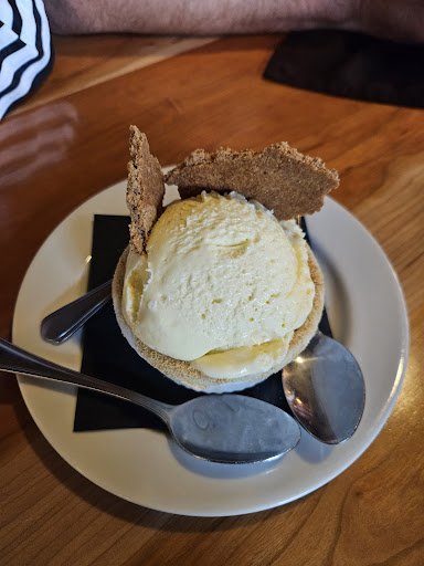 Read moreOur server did his best to give us a good experience, but there was a massive delay from the kitchen. We arrived for an early dinner at five thirty p m., successfully ordered starters, and then proceeded to wait. As the tables around us filled in with newly arriving guests who also ordered, received their food, sat around for a while, ordered dessert, received their dessert, paid their checks, and left, we continue to wait for our entrees. The server professionally and apologetically came by every ten minutes or so to either profusely apologize for the delay and assure us that our food was being plated and should be out within minutes. 90 minutes after ordering, our entrees came out, and the surf and turf was stone cold. I hated to send it back because I would actually wanted to eat dinner sometime before breakfast, but I didn't feel like eating cold grilled meat with congealed mushroom and onion glaze. Another 30 minutes later, I finally received my food, long after the other members of my family had finished their meals. Sadly, we observed the same occurrence happening to another couple with a child seated at the table next to us and saw our poor server making the rounds to apologize to other tables nearby. Meanwhile, the additional condiments that my family members who did receive hot food had requested never arrived. Aside from that, if all you want is ice water, they have a plentiful, delicious supply of it, and the refills are very prompt and timely. The bread starter was a non-starter, and the halibut and chips had potential but when it arrived it looked like about half of the portion...
