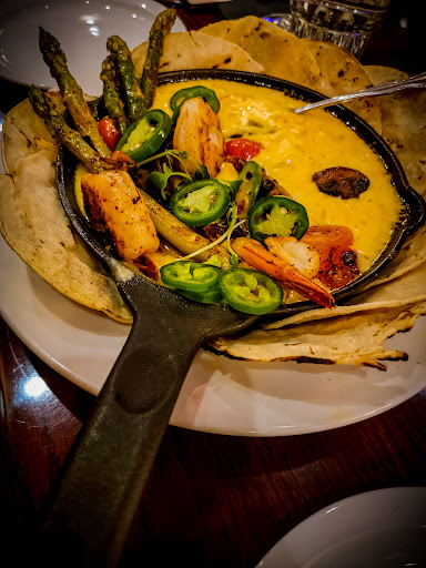 Read moreWe wanted some dinner and opted for a new (to us) place, so our first visit. Walking in we were greeted by someone and quickly seated. General environment was clean and inviting. Our booth was comfortable as well. Our waitress was quick to greet us, providing menus, and asked if we wanted something to drink. Drink menu was pretty extensive, but wine list seemed to only list some prices. We had a Double Shovel cider and a Mojito. The mojito is not something I would ever order here again. It was not good. We also ordered the chicherons (halibut and octopus fried strips with guacamole) to start. I liked this idea but the execution was lacking. Both halibut and octopus were dry and chewy. To get to the guacamole was a challenge being buried in a bowl. Combined together they were not bad, but the meat elements solo lacked flavor, had confused textures and just were not good. For our meal I ordered the porkchops and my wife got the shrimp salad dressing on the side. When the food arrived the dressing wasn't provided and took 2 separate requests to arrive. The porkchops were breaded and fried. For the salad, the shrimp were large and juicy, avocado was fresh and greens were all great. Without the dressing it wasn't as good, and once made available the salad was a star. A couple things on the porkchops, the seasoning was in the breading, which didn't hold well to the meat. The meat was bone in, so breaded this required a little adventure with a knife to cut off. The sauce was good and the salad that comes with it was as well. But the pork needs love. Brine it, let the fat render and caramelize, don't hide it in breading where it cannot shine! And please don't hide bones in breading, not a great experience there.