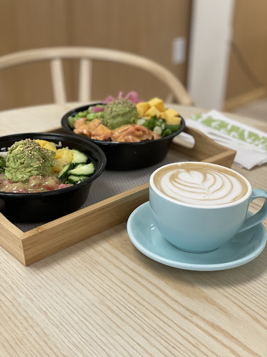 Wow, what we experienced was great fresh and healthy food, a cozy and bright atmosphere and super friendly, quick customer service. I ordered the Salmon Run bowl and he ordered the Aloha Ahi bowl though we could have built our own bowls 🍛. I also had the Sea Salt Caramel soy milk latte ☕(they make the flavor in house). He had the Matcha (not in photo). Everything was delicious!!! We loved everything about our time there and highly recommend you check it out too!