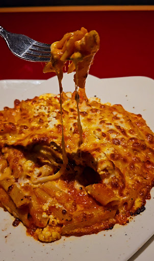 I had the sampler. It also included linguini alfredo. The sauce was delightful - unadulterated, simple, elegant and delucious. The sampler also had lasgna my reason for four stars on the food. It was served at I would guess about 90 degrees, maybe a little less. It certainly has the potential of being at the same level as the chicken and the pasta, but an error in the kitchen didn't allow it to achieve its full wonderfulness in my single experience there.