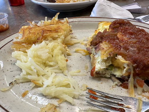 We decided to go back to Southside Grill and have breakfast. We’ve been before. It has been some time since we’ve been back. I knew that I’d love the breakfast because it was great before… but then I didn’t. We did hit the window of luck when it came to seating. We got there and were sat within minutes. It took about five minutes before menus and water came. We knew they were busy, so we understood. I ordered the country omelet (menu states it comes with salsa), with hash browns. My daughter ordered the french toast with sausage patties. She wanted hash browns, but because my dish came with it I said I’d give her part of mine. I asked if toast came with mine and was told yes, that or pancakes. I ordered sourdough. We played with a paper and pen while we waited. My daughter just got a fun pen for her birthday. As we were waiting, there were two tables that got food before us, who were sat well after us. I was confused, so I asked a server if they may have pre-ordered their food prior to coming; also stating they were sat after us. She said that sometimes the cooks will cook what’s faster. One table had eggs benedicts and the other had steak. Our food was dropped off about 5-7 minutes after the other tables. Okay, cool. Now, we didn’t get silverware. We asked for some and they were handed out a few minutes later. Just weird to me to deliver food without double checking for some eating utensils. I was a bit flustered and didn’t realize these were missing from the table, otherwise I would’ve asked when the food was dropped off. My omelet looked pretty normal. The salsa wasn’t on the plate. My hash browns weren’t cooked on one side. I just ate the top. I did share and my daughter did the same. My toast never did come. I really just ate because I was hungry. My daughter enjoyed her french toast but felt the sausage patties had a weird texture. These were premade patties. I asked the server if the toast was an additional charge and if it was I’d like the charge removed as I never did get the toast. She said no there isn’t a charge. Honestly, she never did come back after bringing the salsa that was missing so I couldn’t tell her about the toast until the end when she picked up our plates. I suppose she did try… she took off .50¢ for the missing toast from the bill. We probably won’t come back. It’s quite a drive to that side of town anyway. We left pretty bummed about...