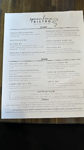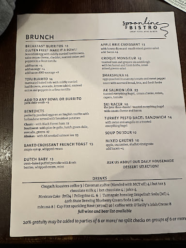Read moreWhat a terrible experience. Spoonline Bistro in Girdwood is by far one of the worst restaurant experiences I've had in all of Alaska. The food is not worth even half the prices listed on the menu, staff and female owner are shockingly rude, ill-intenioned and insulting to customers. The entire vibe is very unfriendly, unorganized and chaotic. The servers were openly bickering with each other and with customers. Aweful. The place was a mess, very dirty for an establishment charging these kinds of prices. I ordered the steak and it was way too overcooked. And everything else on the plates was way too undercooked. To make matters worse, there was hair in my food and a dead bug stuck to the side of my plate. Gross and of course unappetizing. Nobody who works here seems to care about anybody or anything but themselves. They certainly don't put any effort into attempting to serve good food and provide good customer service. This place is likely to be shut down soon for multiple violations - if they don't run off all of their customers first with their F- rated service. Highly recommend you and anyone you care about to stay far, far away from Spoonline Bistro in Girdwood, Alaska. Go anywhere...