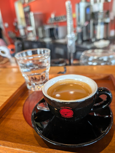 Every sip, of espresso, showcases the vibrant aspects of their coffee. Pared with a seltzer to cleanse the palate gives a grand espresso experience. The cafes machine allows a long pre infusion phase of the extraction process allowing coffee to be ground finer thereby increasing extraction yields.