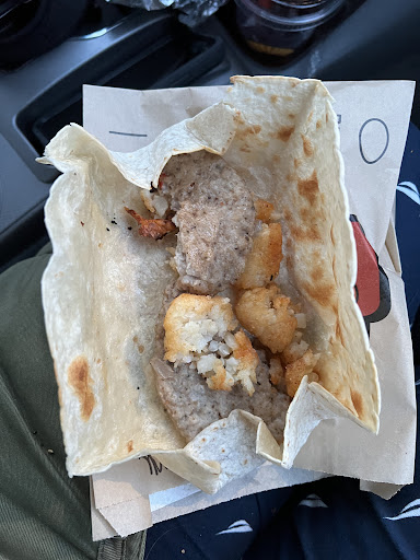 Read moreMy husband got a works burrito. Itâs supposed to have Canadian bacon, bacon, eggs, potatoes, and salsa. Heâs allergic to dairy and we told them but this is what we got in the burrito. Hash brown and sausage that it looks like they threw it in there and didnât really make it a burrito at all. They didnât communicate that they were not putting eggs or salsa or both bacons. We waited over 25 minutes in line, so we didnât really check the food before we left because we just wanted to leave after waiting so long and didnât want to go back because there was a super long line already. So it was very aggravating that they gave us something that wasnât what we ordered and something...