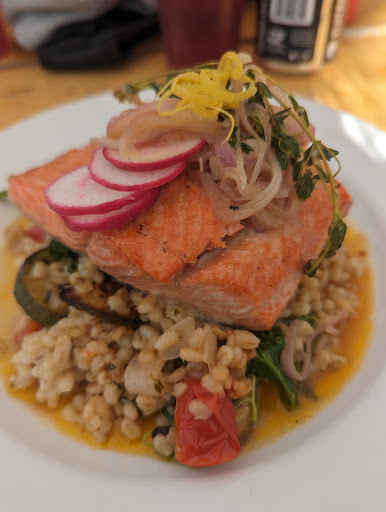My husband and I visited McCarthy for the first time and due to the small size of the town and its geographic location, we expected poor food and restaurant options (we're from Los Angeles so our standards for restaurants are pretty high). However, we were shocked by the menu and food quality! We ordered the salmon and Chugach cheesesteak with a miso salad and hand-cut curly fries. Everything was delicious. My husband doesn't like salads very much and he usually dislikes any miso or Asian-flavored salads, but he ate more than half of mine because it was so good! Everything was so flavorful and cooked to perfection. There was also a great beer and wine list to pair.