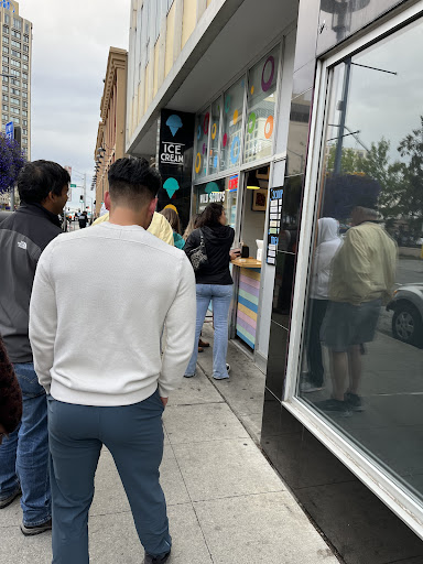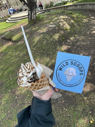 Wild Scoops could not be any friendlier! Yes, you will have to wait outside on a long line for a while, but when you get to the front you are greeted by smiling faces and enthusiastic ice cream scoopers ready to let you try any and every flavor you like and will offer you great descriptions of what the ingredients are, too! Speaking of flavors we ordered the Oreo and black coffee in a baked Alaska (which was a dark coffee base ice cream with chunks of Oreo in a waffle cone with meringue on top~ it was amazing!), Wild blueberry (fresh taste with blue berries from Alaska), Rhubarb crumble (which they describe as: Cinnamon-nutmeg base + AK rhubarb jam + oaty streusel), Fireweed and Honey (which honestly, I cannot describe properly, but it is almost a strawberry but not a strawberry like flavor- but you MUST try for yourself!) and Kincaid coconut (which was on the sweeter side. They describe it as: Creamy chocolate coconut). We loved each and every flavor we tried and they have such cool flavors, too! Every flavor was unique, interesting, and tasty! Although the line might get long, when in Anchorage, you have to go! Worth the time and worth the calories!We would...