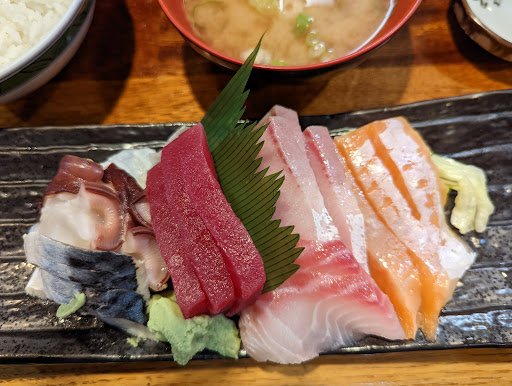 Read moreAll the pieces are in place for a great hidden gem but it doesn't really come together. I came solo and sat at the bar. Chef was very busy cooking so wasn't very conversational (very understandable, it's basically a one man band). The waiter (chef's wife?) was very friendly and engaged with some patrons, but that meant the rest of us were pretty neglected. Took a long time to order, and even then she didn't quite get my drink order right, and nothing could be done (in short, there are many different sake options available, I was asked what I wanted to drink and as I started with "I'd like some sake, specifically--" I was cut off and couldn't finish specifying and was just served large hot regular sake). Ordered the sashimi dinner (and I was told by a local to order the special sake which includes a grilled salmon seasoning, but again I was served regular sake). Food was very tasty and fresh, portion sizes were normal if not a tad bit small, but I saw other patrons have other dishes that looked larger. After finishing, it took an additional 20 mins to get the bill, because the waiter was engrossed in a) chatting with other patrons, b) singing karaoke very loudly (it's a small room), and c) drinking sake. Once the bill came, I was charged an additional "table set fee" of $9.50. To the best of my recollection, this isn't listed or mentioned anywhere, except these reviews. So be prepared to wait, and pay, for an overall...okay...meal.