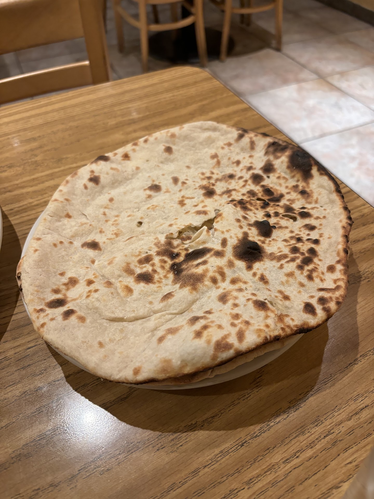 The naan was thin, tough, and dry. For some reason, it still couldn't absorb any flavor from the curry. It was like a piece of cardboard. Chewy, tasteless, and sad.
