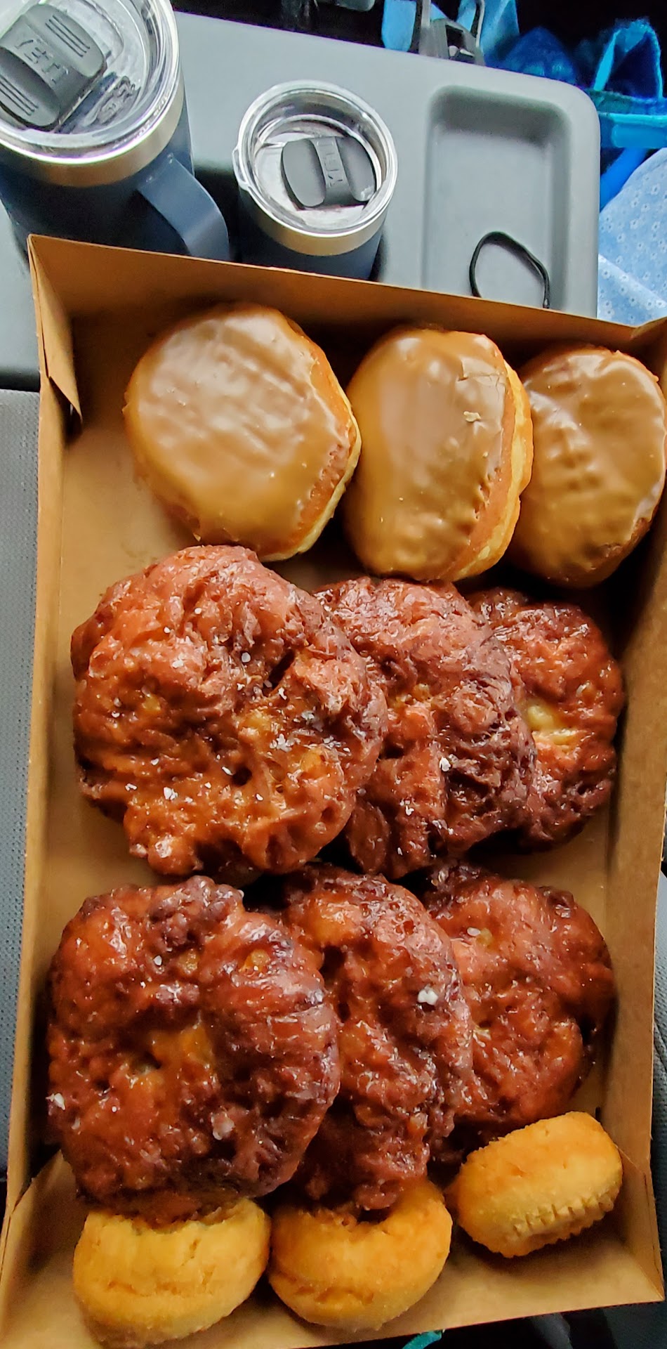 Got 2 dozen assorted donuts, even some maple bars with bacon, some Bavarian filled, etc. specialty donuts. 1 box was for the office, 1 for our stockroom onsite ATI.