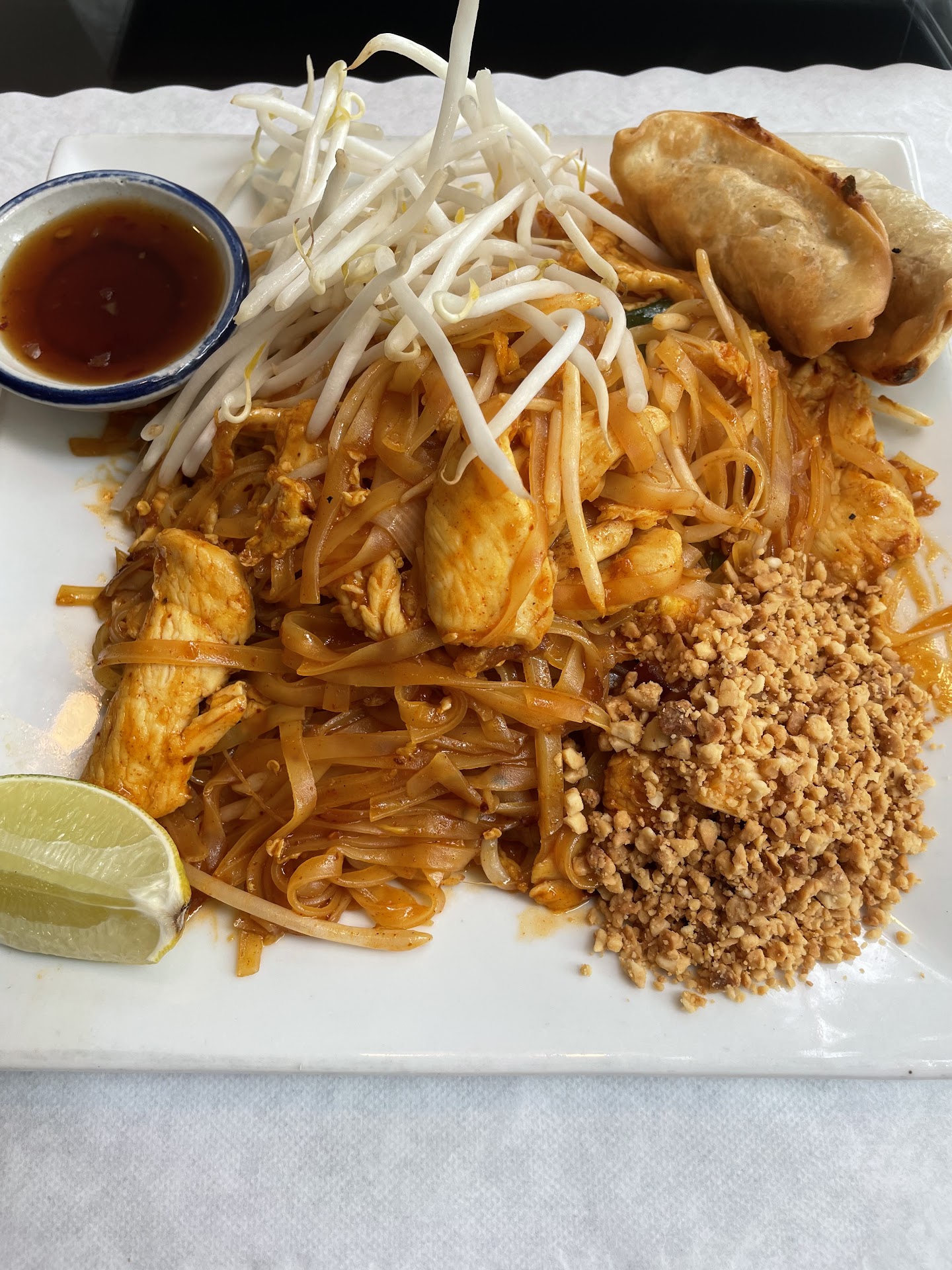 One of the hallmarks of Thai cuisine is the aromatic fresh herbs and balance of flavors. Neither of these traits existed in any of the items we ordered. The salad rolls had zero flavor, the "Thai peanut sauce" that accompanied them tasted like peanut butter with added sugar. The pineapple curry and drunken noodles had spice, but literally nothing else to balance it. Where is the fresh basil? Cilantro? Lemongrass? Lime? Anything fresh? At all? I strongly suspect that the pineapple was from a can, the vegetables were overcooked and soggy, the meat was overcooked and dry...