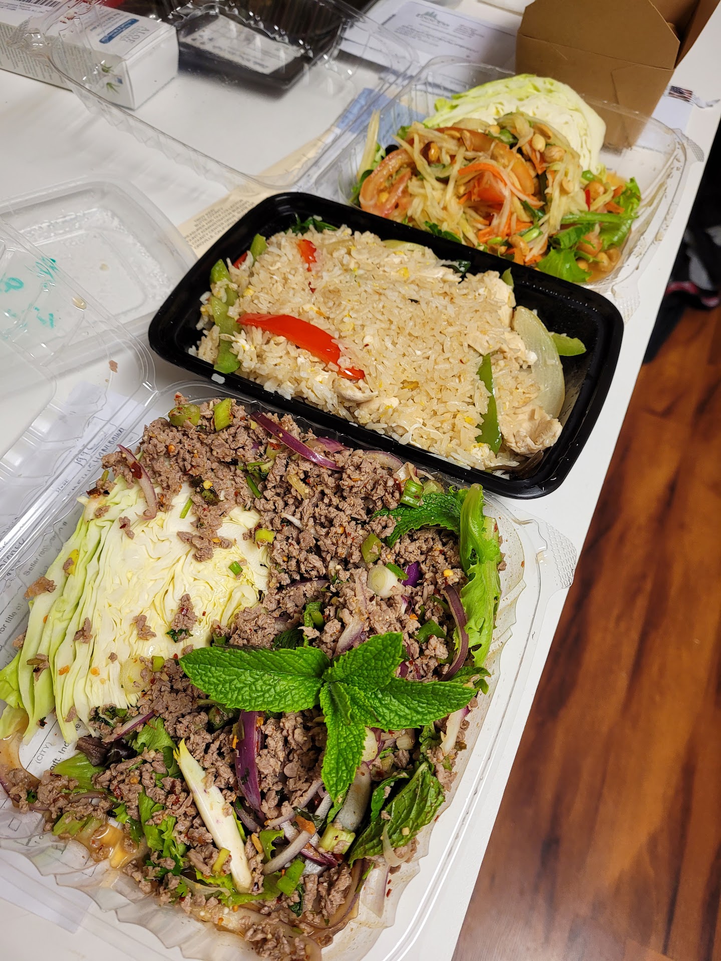 I ordered the crispy mango chicken. It wasn't my favorite. It was pretty salty and not very sweet and not much tang and the chicken was mostly bread. My daughter got the massaman curry. That was much better. And my wife got the drunken noodle which was also good. But I need to go back because there were so many things in the menu that I...