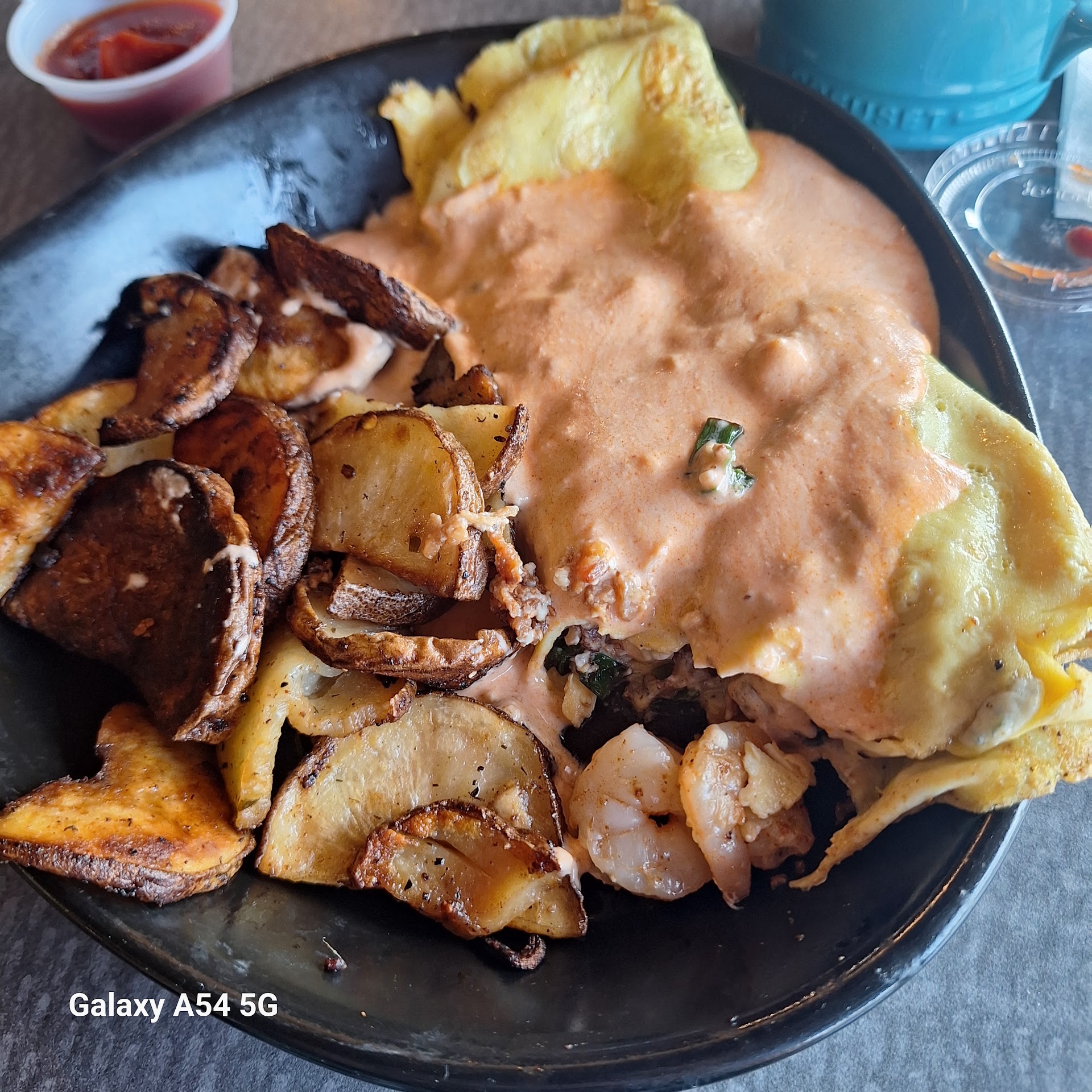 I've been here so many times, I don't think I have enough room to talk about every good food I've had here. However, I will address the ones that stand out the most to me. The southern beignets are served with a rasberry and lemon curd, and maaaan is that stuff good! Another highlight is ye cottage potatoes, that come as a side with a lot of meals. They are salty and crispy with a soft middle, a great addition to a breakfast sandwich. A more savory entree option that is my other favorite is the Eggs Benedict, it is absolutely delicious. My family's other favorites are the banana fosters French toast, shrimp and grits, and the OG.