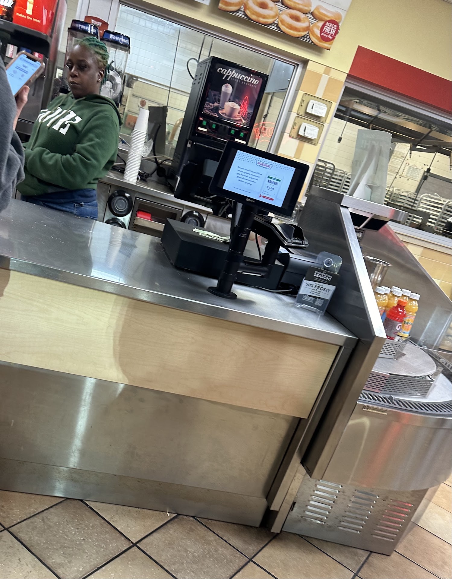 Ā Ā Ā Read moreThe food here is always good. The only reason I didn't give this place a higher rating is because of the way that I was treated when I wanted to use one of the coupons that they (Krispy Kreme) sent out in the Sunday's paper. The cashier saw my coupon and got really angry and wouldn't honor it! I told her at the speaker that I had it and she was fine until she saw it. It was the one that said"buy one dozen for a certain price and get the second dozen for. 99. She straight out told me that I couldn't use the coupon after I had ordered my donuts and told me that I had to buy 2 dozen before I could use the coupon without even reading what the coupon I had in my hand stated! I cancelled the second order went home to contact a manager. When I called back she answered the phone and told me that there was no manager ever there and to call back another day!!! I have not been back since. I don't spend my money where I feel mistreated!!! I work to hard to give my money to a business that that helps to provide a paycheck to a person that is rude and truly needs an attitude...