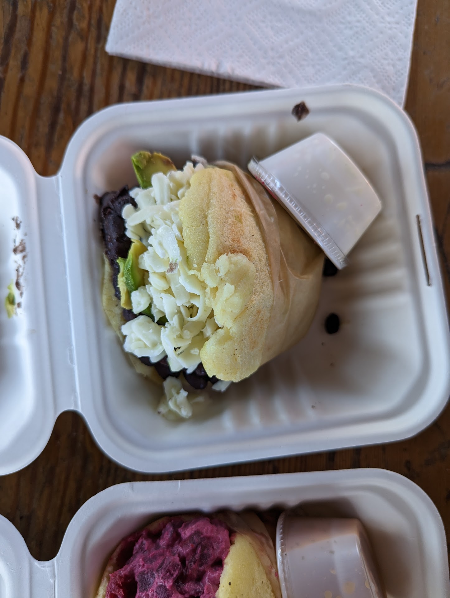 Read moreDisappointed. The meat empanada was tasty, and the chicken empanada was just okay. Nothing special about the seasoning or juiciness (rather dry) of the chicken. The 2 cheese arepas had cold cheese in them, instead of warm, melted cheese, as is traditional. The empanada exterior resembles a cheap corn dog’s, and the arepa exterior resembled an English muffin.