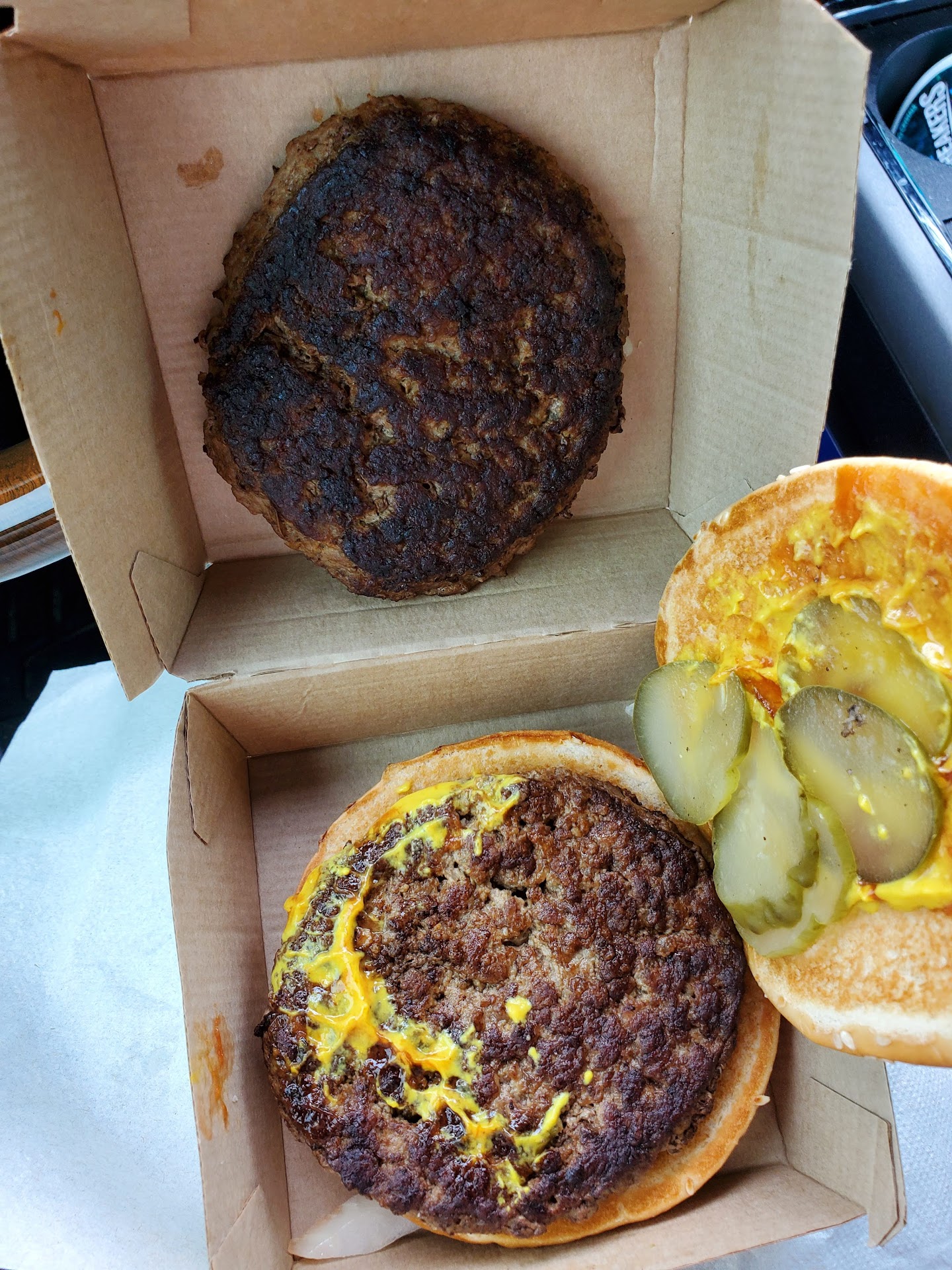 Also, the bag they give us fell apart as I carry drinks and the family member carries the bag which gives in and drop all the food on the stair steps. Burgers were okay, but most of the fries of what we can salvage that is not on the ground is not. You guys need...