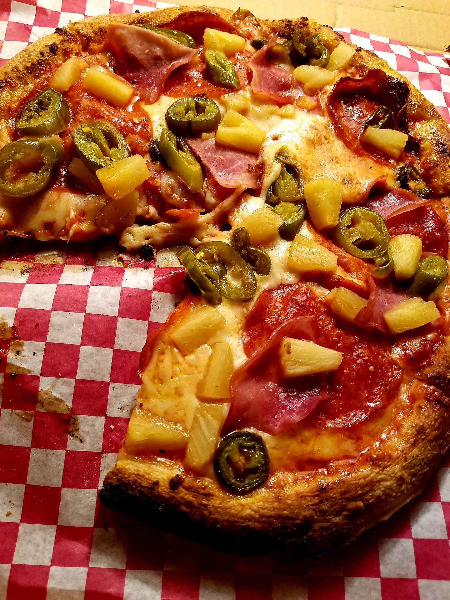 Cons: Staff has no concept of proportions and balance when placing toppings, throws the taste of the pizza way off. Friendliness could use a slight bump. Pizza was brought out on THIN piece of paper on top of a perforated pizza tray. Which wouldn't be a huge issue, but the pizza was very damp on the bottom and easily dissolved the paper. Didn't see any plates anywhere, though plastic forks/knives are available.