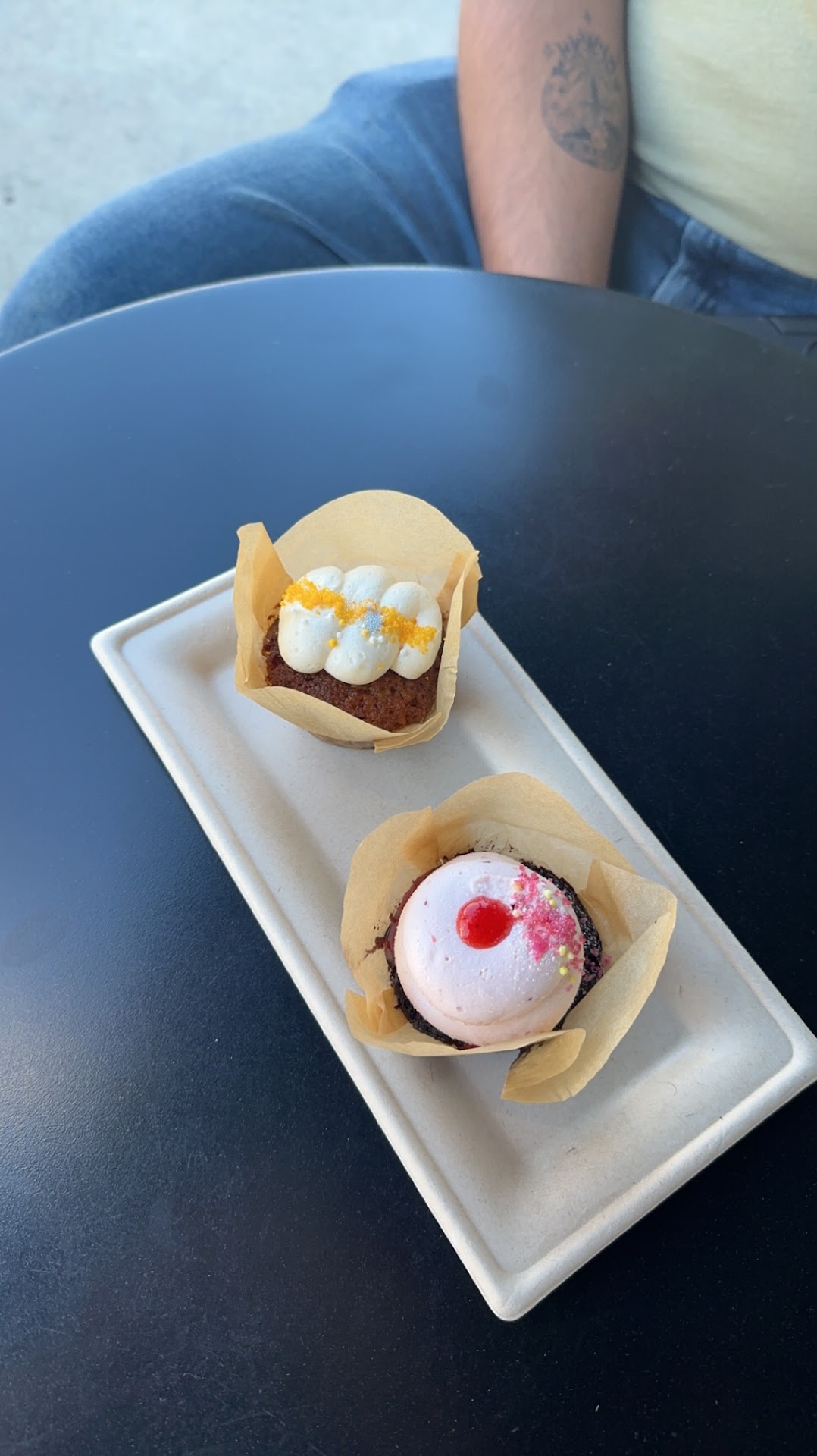 Read moreI bought two German Chocolate cupcakes to try... The cupcake was moist, the chocolate frosting was like a slightly whipped version of something from a Safeway cake, and the coconut frosting was dry, lacked flavor and definately sans coconut or vanilla flavor despite the bits of coconut. The chocolate cake was very dark but a bit bitter. None of it was very delicious or decadent. Seems like an easy one to nail... Devil's food cake and frosting was easily 4plus stars in comparison... Definately not worth $5/pc. They put effort into the paper wrapper so it looks nice... More of a $1-2 cupcake at a fundraiser quality. Service was bleh, they asked what I wanted, picked up the cupcakes, boxed them, asked if I wanted anything else. So it wasn't bad, just extra silent. I was given plenty of time to decide before I was served, very very low pressure. I'm a big, dark, and kinda scarey looking bearded guy, so I get the lack of any service much, less cheerful service. Oh and I switched up to eat it with a fork, incase the cupcake needed more organization to experiences the flavors vs. very a wide open bite to get all 3 flavors together......