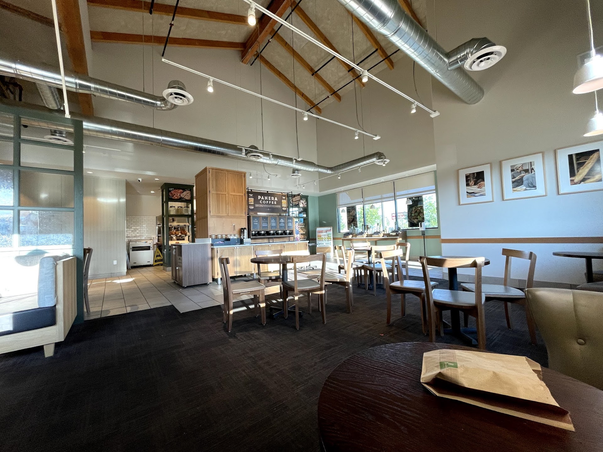 Read moreFood is good depending on what you order. Breakfast sandwiches not the best, soups are good, and salads are good though a little pricey for what you get. Been here twice since it opened. The most recent visit went for breakfast got bagels and coffee. Coffee is good. When we ordered was the bacon souffle we wanted they forgot to put bacon on top so none where available and they ran out of cinnamon rolls. We got bagels and a bear claw instead. Bagels are good. Went to sit down to eat and every table was dirty had food or crumbs on them . We had to clean our table. Took forever to get our food , place was empty and I got up and grabbed our bagels that were just sitting in window. We ordered them toasted they sat there so long they were cold. Forgot the bear claw and other part of our order. We watched as plates were taken off tables but none were wiped off. Three employees were sitting eating or walking around. As we walked out almost all the tables were dirty with food . They doors were disgusting, food was all over one of the glass doors and grease. It was so gross I was dry heaving on my way out food on floors, chairs tables. Not sure if food on door was a piece of lettuce or a booger. Both sets of doors were so dirty didnt want to touch...