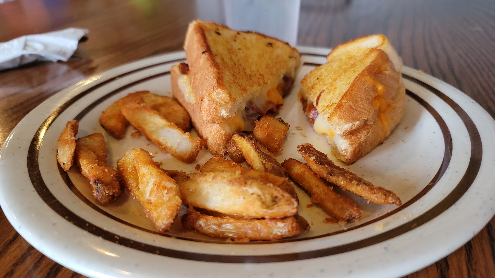 Read moreStopped by yesterday evening around 6 and was very disappointed. Ordered cheese sticks,bbq plate with fries and slaw and ultimate grilled cheese with Mac and cheese. The cheese sticks came to the table still frozen in the middle with 4 cheese sticks stuck in a clump had to take back up because the waitress didn't check on us we waited 10 minutes and she never came back so they replaced the cheese sticks and they were fine 2nd time but it's been around 35 minutes at this point we got our main plates in about 50 minutes after ordering and it was not worth the wait. The bbq was not that good fries were cold and greasy the slaw was good it was homemade the mack and cheese was microwaved. The grilled cheese was not ultimate added ham for 1.50 and 1 pice of deli ham was on it . Got 2 pieces of pie and wasted that money we got them to go coconut cream and chocolate cream the 2 pieces looked very beat up put already melted whipped cream on the chocolate the coconut was not any better. I would have never sold them 2 pieces of pie to anyone I wish I could have gotten pictures 38 dollars...