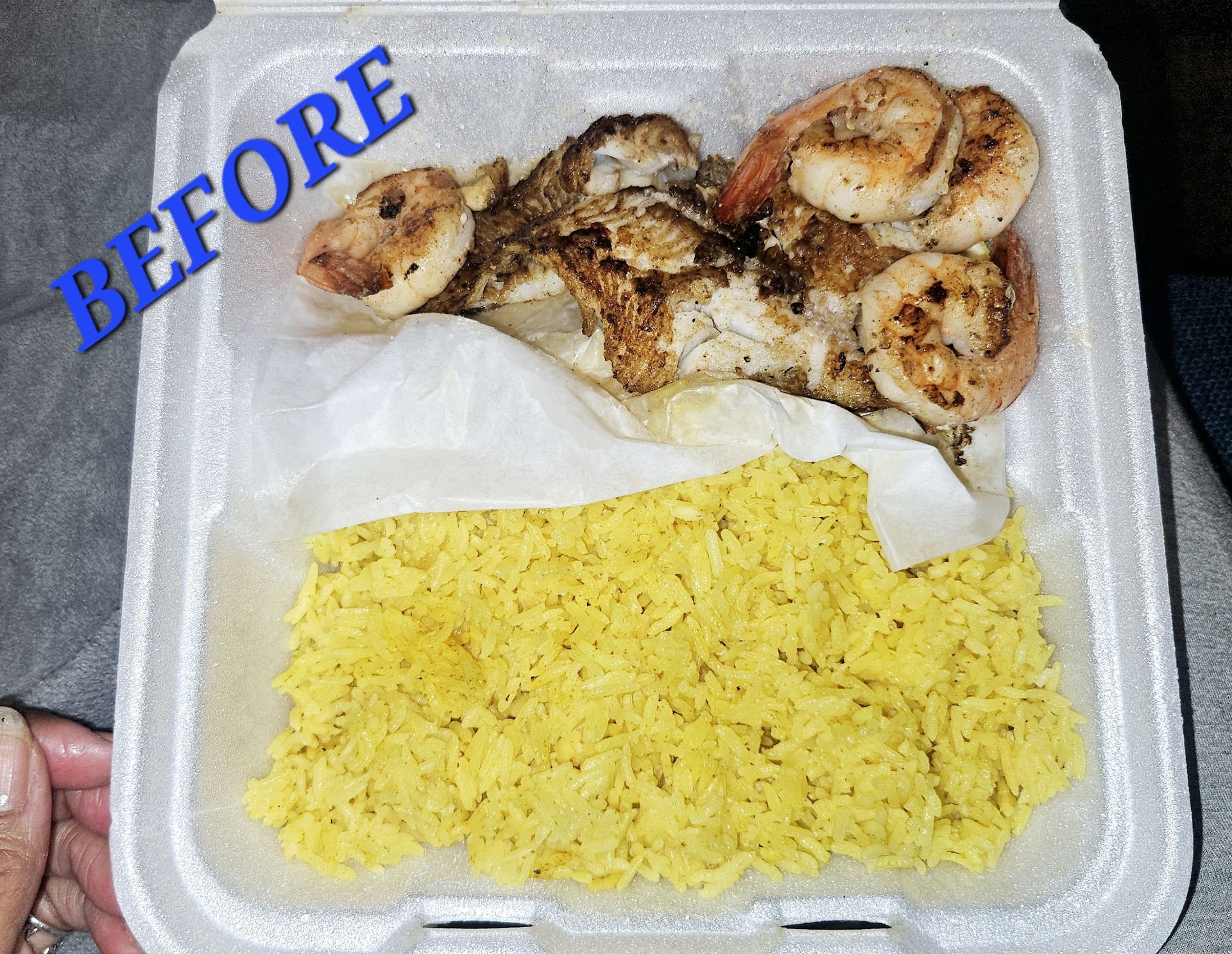 We can't speak on something we didn't have but the shrimp, grilled catfish, coleslaw, yellow rice, chicken sandwich, cheeseburger fries and red velvet cake we did get were tasty. Well, the yellow rice actually was bland, but that was to be expected. I added Nori Komi Furikaki to it and had a wonderful dinner. The owner was nice and personable, and the cook staff was doing their best to keep up with the demand. They couldn't cook, take orders, bag orders and polish tables too.