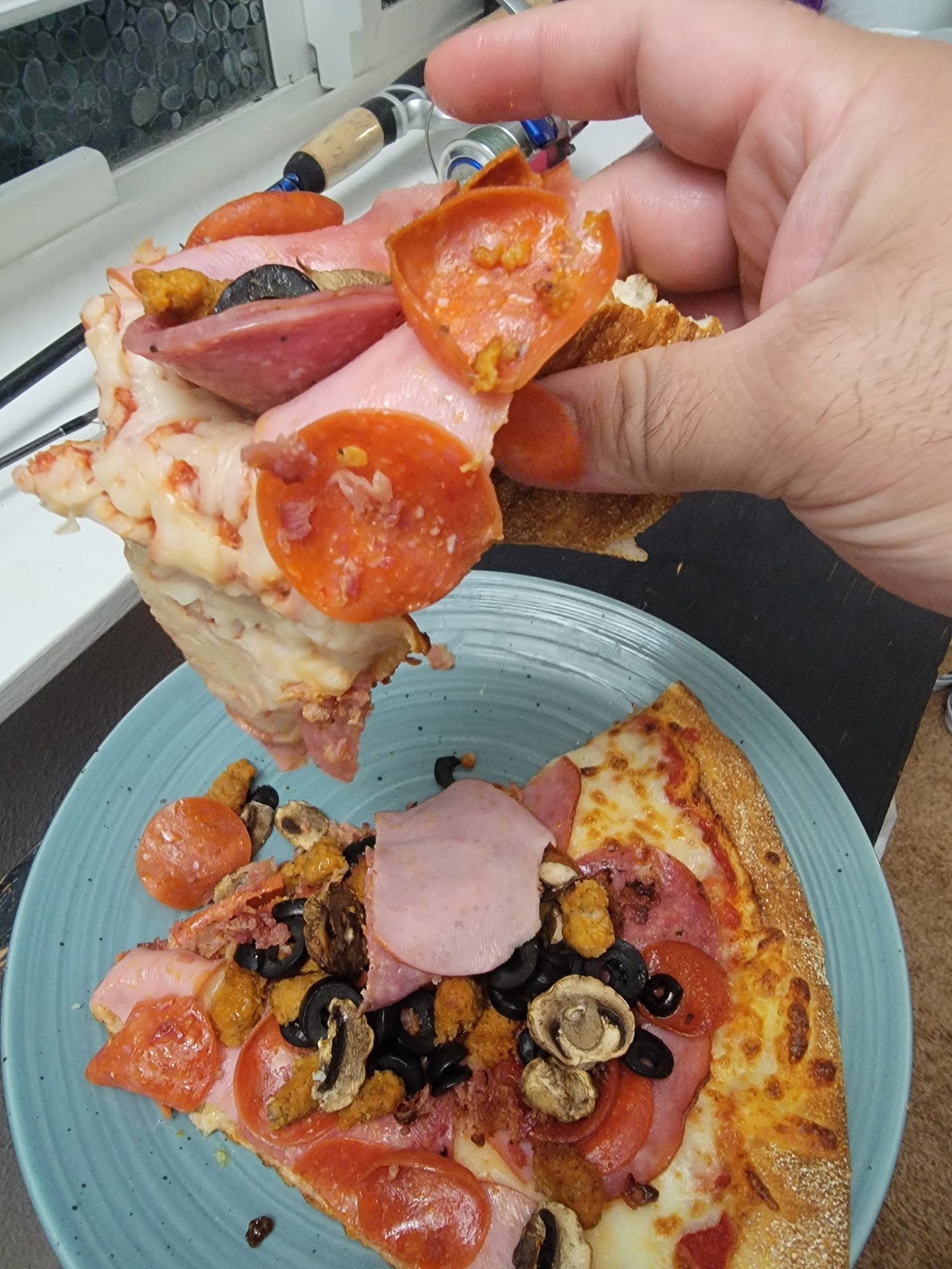 Update 2: They sent the food to my house anyway, I should have turned it away at the door. The pizza was room temperature, and soggy in the center again (but this time it could have been because it sat in a warming oven for more than 30 minutes). I also ordered a sandwich. The delivery driver said they accidentally made 2 and gave me both. One had clearly been finished a while ago as the bread (and even the fried chicken!) were soggy. The potatoes had lost all crisp/crunch they may have had because they sat in a plastic to-go container for so long. I threw both sandwiches away. The pizza is probably salvageable, but I will have to use an oven to prevent the already soggy crust from getting worse in the microwave.