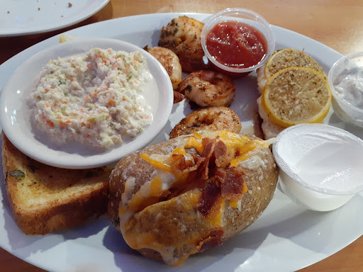 I ordered one of the confusing steak dinners, thereâs multiples all with slight differences. I ordered a 12 oz medium rare ribeye, salad, shrimp, fries and garlic toast. I didnât get my salad until about 5 minutes after I got my meal, which was strange. My shrimp didnât come at all until I was almost done and remembered I was supposed to get them. But this is where things go from weird to just bad. I didnât get a ribeye at all. I got a precooked chunk of prime rib that was loafy and Iâm guessing cooked at the factory. It was white/grey in color and was overcooked and just bad. I also got cole slaw with my meal? Nice surprise. But yeah, this is the first steak dinner I didnât finish. I didnât even eat half of it.