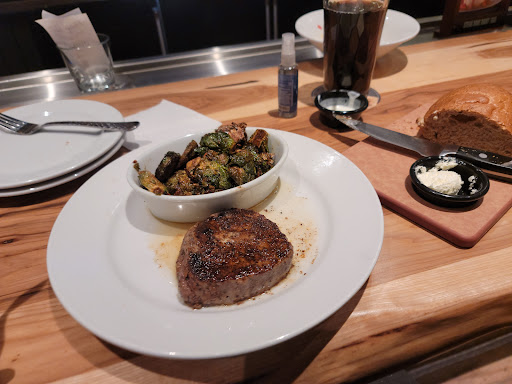 Newly opened, and you would never know it if you didn't see the corporate trainer wandering through. Staff is knowledgeable, friendly, and already working super well together. The food (bread/butter, Flo's 6oz filet with side salad and Brussels sprouts, fountain drink) was perfectly cooked, delivered hot, and prepared quickly. I sat at the bar because there was a long wait for a table but they cycled folks through quickly. Such a great launch!...