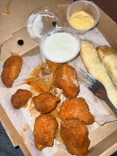 We ordered 3-6 piece wings and half an order of breadsticks. After an hour I got a text that my order would be on its way soon. 23 minutes later I had to call and ask where my order was and I was told it was just going out. When our order finally arrived it was all cold! And idk if it was sitting for so long the paper got soggy but I had to pick pieces of paper off every...