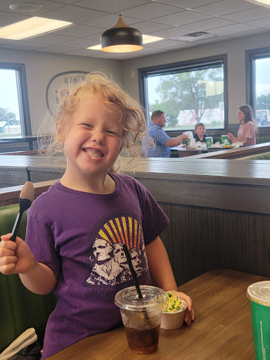 Read moreOur party of two stopped here for lunch today while cruising on some scenic rural state highways through miles of ag land and small towns. Pros One attentive, enthusiastic, and friendly counter worker in spite of an uber busy lunch crowd Lettuce and tomatoes on a hamburger unlike the bigger city versions of the same food choice Convenient location Cons Lack of exit signs in the parking lot traffic pattern One seater restroom Very congested space for ordering food, filling drink cups for onsite customers, and restroom access Overly salty, short, and well done...