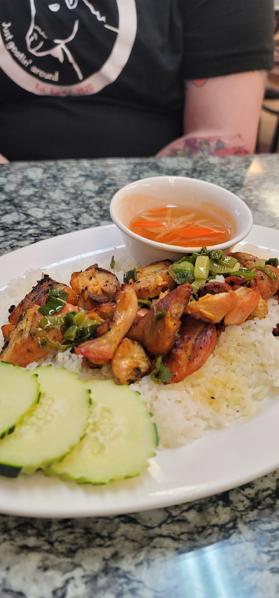 I have gone to this restaurant a lot, off and on, over the years, partly because I live in the neighborhood. It's good, but because of the unappealing ambiance (let's stare at the TV!), I think of it primarily as a takeout place. Vietnam 2000 has some unusual dishes on its menu that I don't see at a lot of other Vietnamese places (though I'm not sure it has anything no other local Vietnamese restaurant has). I particularly like the steamed rice flour sheets; the stir fried flat rice noodle dishes; steamed rice with tomato sauce, tofu & vegetables; fried rice noodle with vegetable and tofu; spicy Huey style rice noodle soup; and those jalapenos stuffed with pork, that are sometimes a daily special, I think. (I don't see them on the online menu anyway.) I'm not that into pho, unfortunately. I wish I were, since there are so many good Vietnamese restaurants here. I don't like slurping long noodles out of broth. I've lost at least one shirt attempting to do that. But I also just don't like the combination of long noodles and thin broth, even if the flavors are generally great. I maybe have only gotten the Huey style rice noodle soup once or twice, but I did like that one in particular. From the appetizers, the fresh spring rolls, fried egg rolls, and tofu salad are all good. I also like the beef ball soup, for some reason, even though there's not much to it. Service is fine, especially considering that I have almost always...