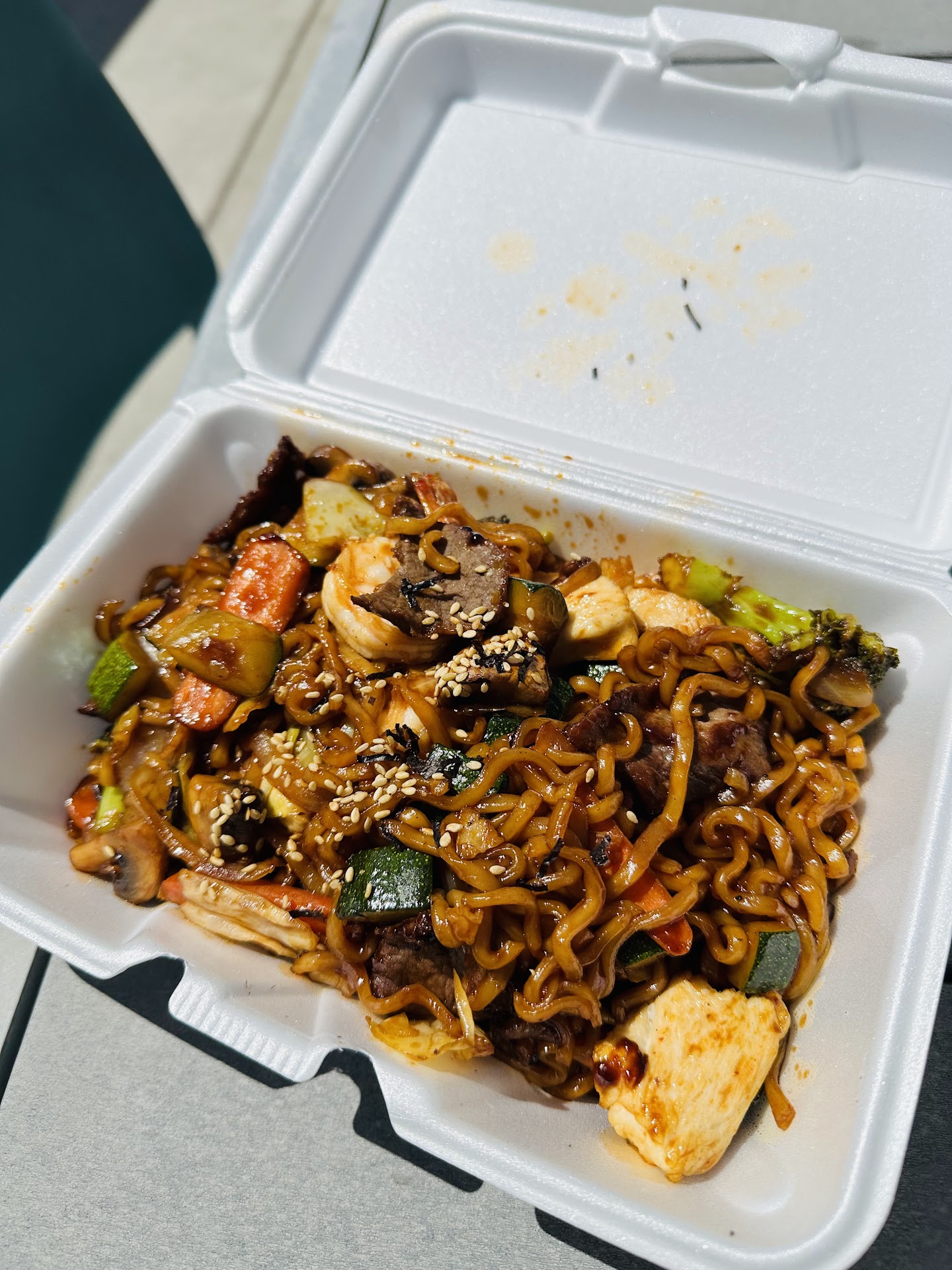 Read moreI really loved the environment at the food plaza, it was too chilly to enjoy the outside seating so we took our food to go. The veggie stir fry was awesome, I had shrimp and my boyfriend had the combo, both were excellent. The veggie tempura should be eaten on premise as it was cold and lacking its best when we eat it. I did put "other" as a tip, because I leave a cash tip, but when I looked at the receipt later the tip had been added already....