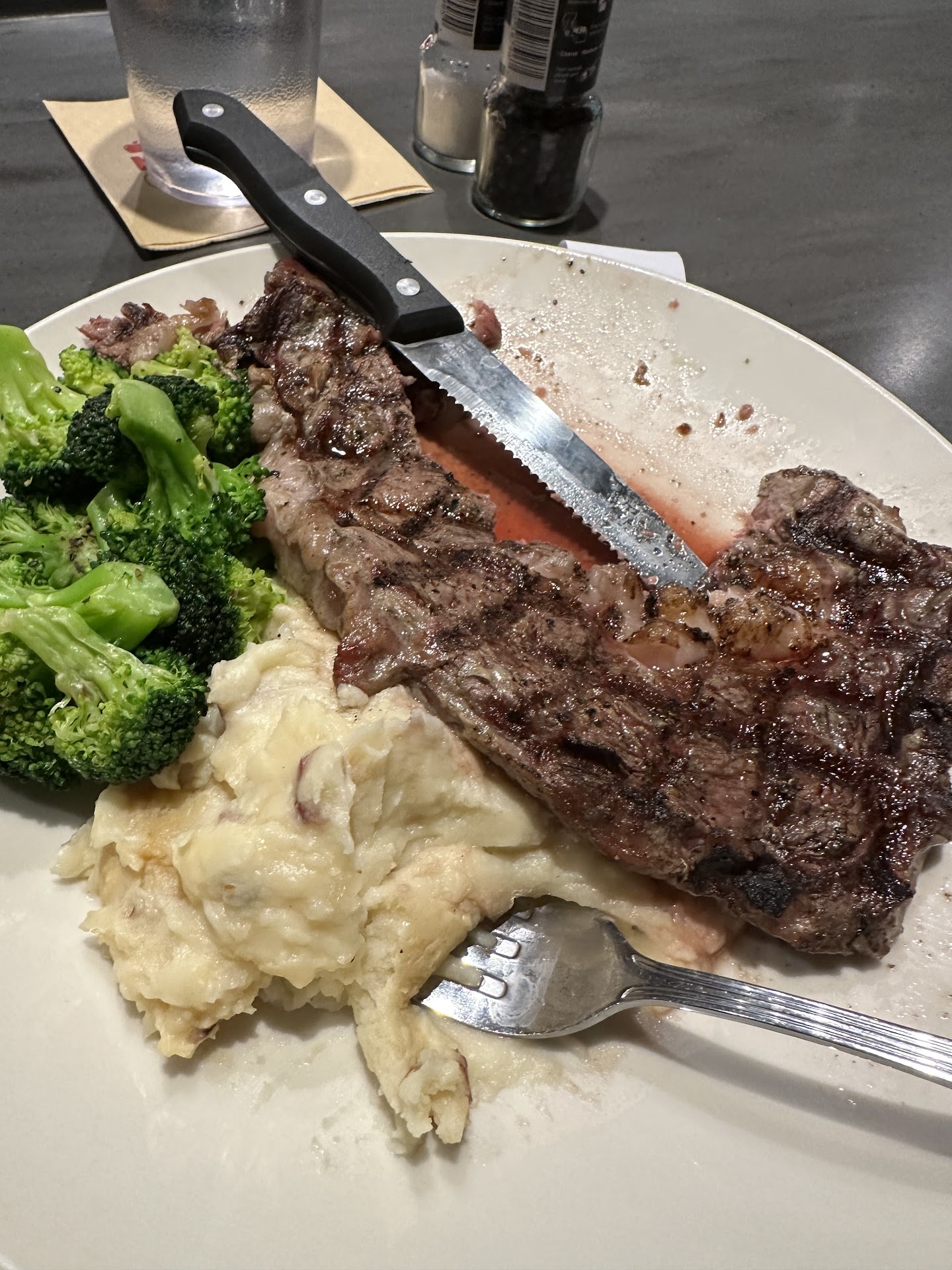 Read moreWell, I haven't been to Applebee's in about 20 years, but i decided to give it a try tonight because of the combo special recently advertised. I walked into the restaurant and was not greeted with a smile. I asked the two hostesses, "Why do you look so sad?". They looked at each other, quite confused, which made me chuckle. I sat at the bar and was nicely greeted by the bartender. I ordered a margarita with my dinner. I couldn't help but immediately notice that the atmosphere was dead (maybe 10 people) & three staff members were trying to fight to stay awake while leaning on the bar yawning, drinking to maybe hydrate because the bar area was so darn hot. I couldn't help but laugh and stated that someone needs to turn down the heat a few notches. My drink arrived ( I still don't get ordering a margarita and having to pour it into a martini glass, no matter what bar I sit at, let alone the price of 13 bucks for one. Still messy.) and after a while, so did my plate. I requested my steak for medium well ( I'll let you be the judge of it) but decided to eat it anyway. As I continued to eat dinner, it seemed that there was a party/live action going on in the kitchen, which explains why the staff would disappear to the back to avoid the heat wave to maybe wake up. Once the heat came down, I started to notice people staying in seats and 11 tables full. I intended on staying to have a few drinks, but as I finished my meal and paid the tab, I turned around to make my way towards the ladies' room. At the corner bar table were seven staff members sitting & occupying the corner table. I was quite surprised. Come on, staff! Get it together. Never have I had dinner in a place like this. No wonder Applebee's branches are closing, and those that are open are failing to bring back their customers. Sorry, but I don't believe that I will be returning to...